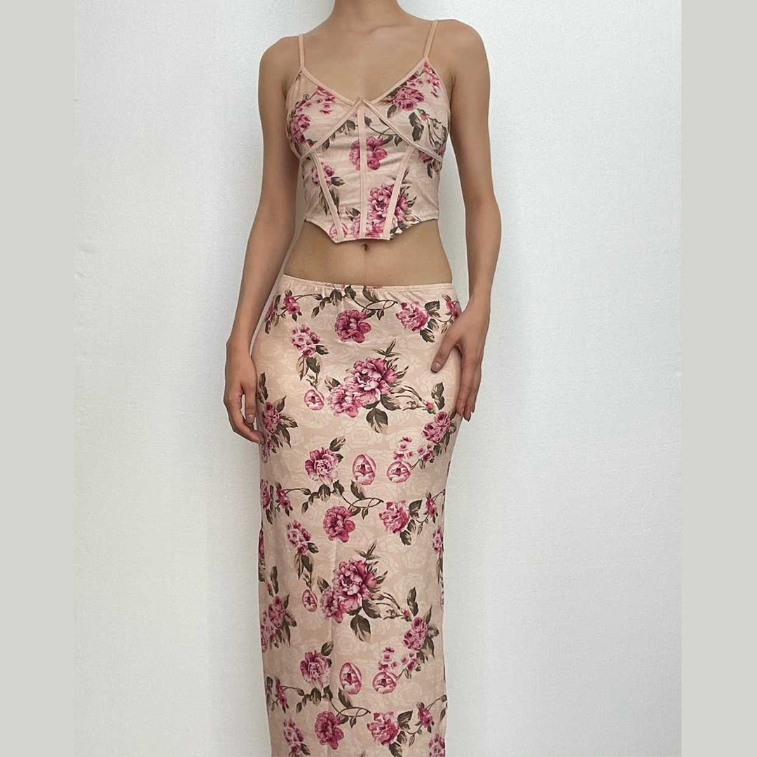 Комплект из макси-юбки с цветочным принтом, корсетом, разрезом и открытой спиной (финальная распродажа) | Фестивальные наряды для женщин